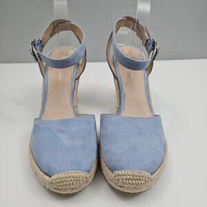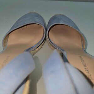 Stuart Weitzman Crystal Buckle Wedge Womens 10 Cornflower Blue Suede Espadrille
