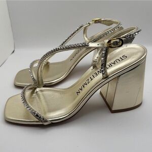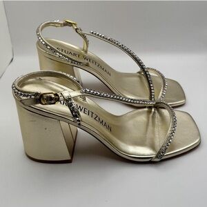 Stuart Weitzman Crystal-Embellishment Open-toe Block Heels - Sz 7