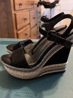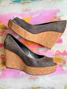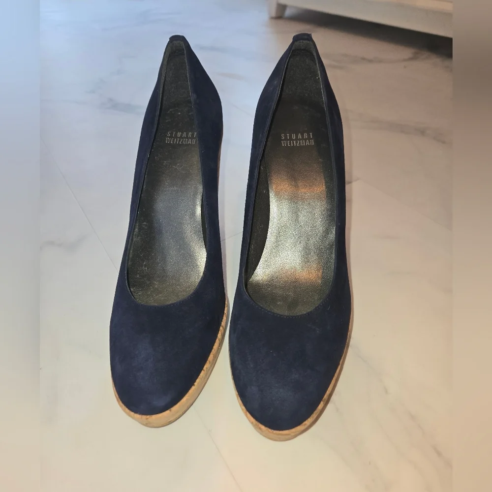 Stuart Weitzman Dark Blue High Heel Corkswoon Wedge Size 9.5