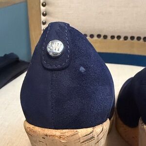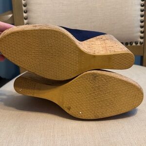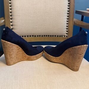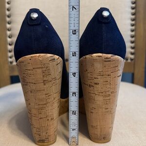 Stuart Weitzman Dark Blue Suede Cork Wedges, Size 8.5