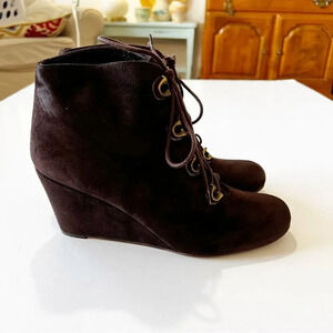 Stuart Weitzman Dark Brown Suede Lace Up Wedge Ankle Boot Women’s Size 10 Fall