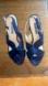Chic navy platforms with crisscross straps. Perfect for elevating any look.