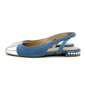 Stuart Weitzman Denim Pearl Slingback Flats Size 6 Silver Cap Toe Made in Spain