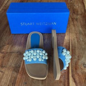 Stuart Weitzman Denim Pearl Slide, Size 6.5
