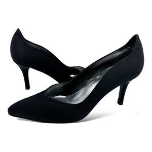 Stuart Weitzman Designer Curvy Black Fabric Heels 8 Formal Pumps 7M