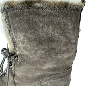 Stuart Weitzman Designer Gray Suede Faux Fur Lined Boots 7.5 Combat Mark on Toe