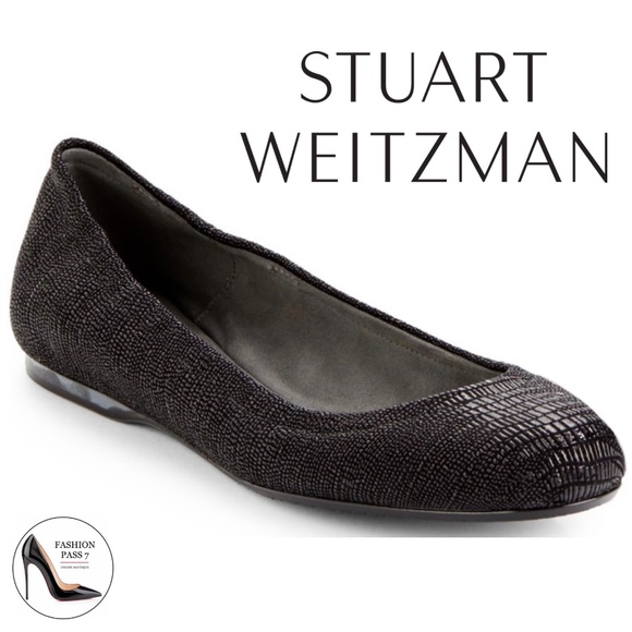 Stuart Weitzman Dotsnot Snake Black Suede Leather Ballet Flat Heel Shoe Pump 6.5