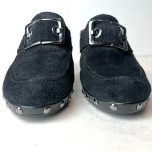 Stuart Weitzman Double Agent Black Suede Studded Mule Clogs Heels Sz 6.5
