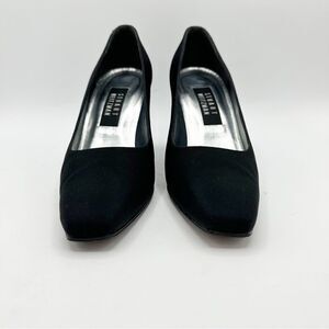 Stuart Weitzman Dress Pump Black Satin Blunt Square Toe Mid Heel Size 7