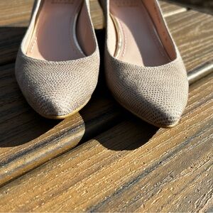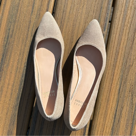 Stuart Weitzman EUC Size 5 Wedge Pearl Tortoise Heel MSRP $475 Textured Leather