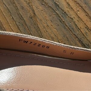 The Stuart Weitzman women’s Size 5 Wedge Pearl Tortoise Heel is a luxurious and stylish pair of women's shoes perfect for various occasions. Made of textured leather with a slip-on closure, these heels feature a pointed toe and a low wedge heel. The pearlescent gold accents add a touch of elegance, making them ideal for parties, casual outings, and business events. Crafted in Spain, these shoes offer comfort with a cushioned insole and a synthetic outsole, combining fashion and functionality for the modern woman.