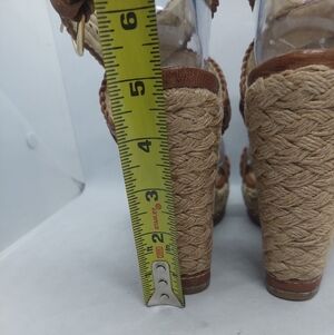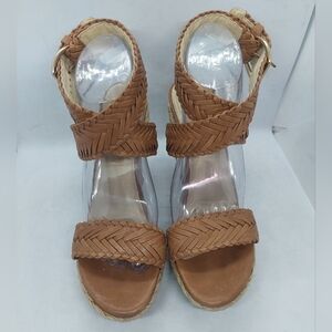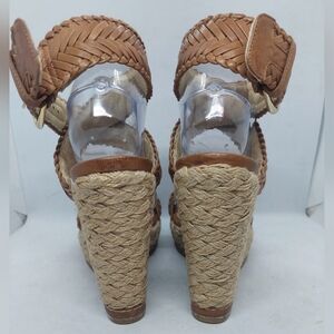 Stuart Weitzman Elixir Braided Leather Wedge Sandals Tan Brown Womens Size 8.5M