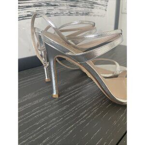 Stuart Weitzman Ellsie High Heel Silver Leather Stiletto Strappy Sandals US 7.5