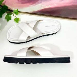Stuart Weitzman Elodie Leather Slide Sandal in White Size 10