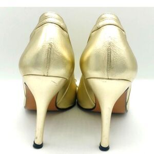 Elegant Gold Embellish Open Toe Slingback heel Shoes great for special occasions. Please see 7th pic shows a bit of sign of wear. Other than that it is in great condition!