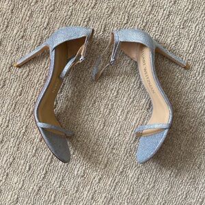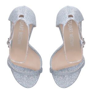 Stuart Weitzman Embellished Silver Sparkle Shimmer Nudistsong Sandals 120 sz 10