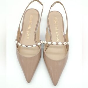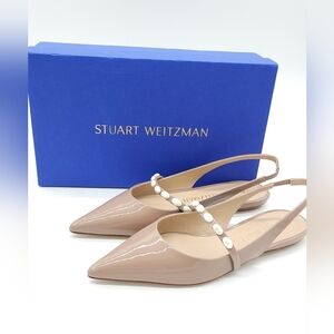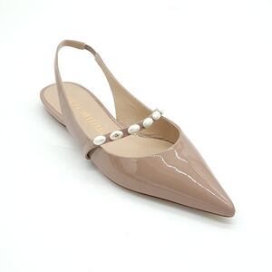 Stuart Weitzman Emilia Pearlita Slingback Patent Leather Flats Women's Size 9