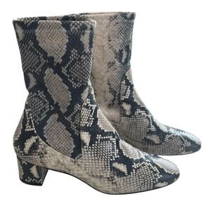 Stuart Weitzman Ernestine Python Print Leather Boots Gray Cream Size 7.5