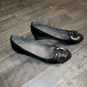 Stuart Weitzman Espadrille Black Patent Wedges Size 8