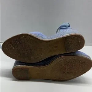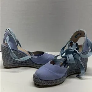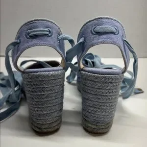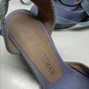 Stuart Weitzman Espadrille Wedges Heels Lace Up Ankle Strap Canvas Blue Size 6.5