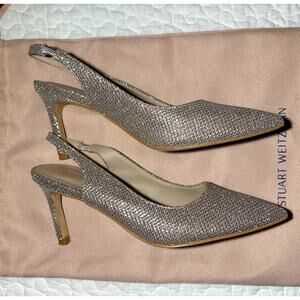 Stuart Weitzman Eva 75 Pointed Toe Slingback Pump Color: Poudre size 6.5
