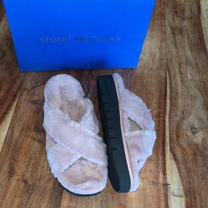 Stuart Weitzman Faux Fur Platform Slide in Blush, Size 7.5