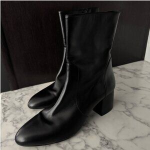 Stuart Weitzman "Flareblock" ankle booties in smooth leather. Its unique 60-mm flared block heel, constructed with a wider sole, infuses a sculptural sensibility to the look while simultaneously offering extra support. Nordstrom tags, brand new, never worn, without box.
