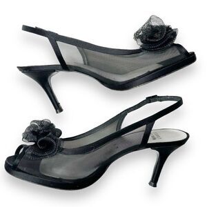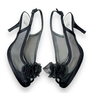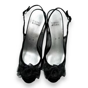 Stuart Weitzman Floral Mesh Ruffle Embellishment Slingback Pumps Black Women’s Size 8 M