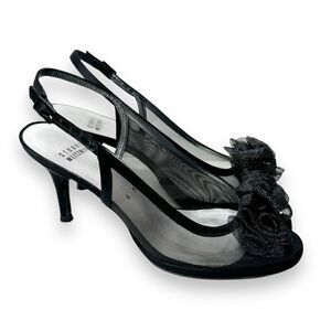 Stuart Weitzman Floral Mesh Ruffle Embellishment Slingback Pumps Black Size 8 M