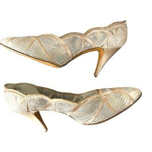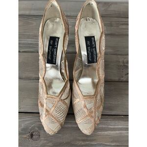 Stuart Weitzman Floral Print Neutral Mesh Accents Pumps Size 8.5