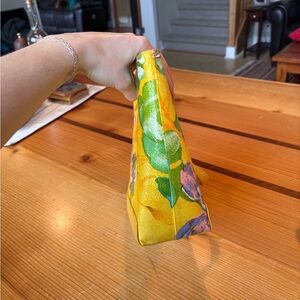 Stuart Weitzman bright yellow floral tote bag with yellow leather handles and a magnetic closure. This is a GORGEOUS bag - lovely for the warmer months. I haven’t seen many like this & this one is brand new/never used!