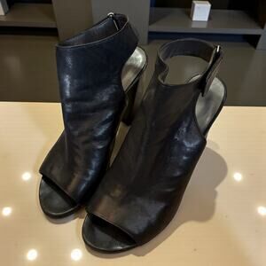 Crafted from a beautiful soft and smooth buttery leather, these peep toe booties feature cut out details at heel, adjustable ankle strap and high block heel.
