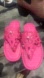 Bold fuchsia sandals with intricate cutout design. Perfect for a stylish look.