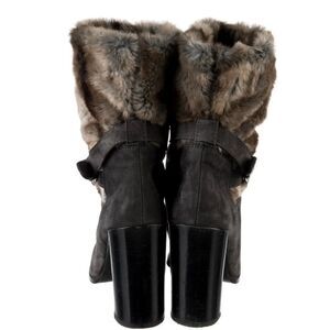 Gorgeous Stuart Wetizman Suede slate grey and Faux Fur Booties with Crisscross buckle strap, pull on style, rubber sole, 4” block heel, lightly padded footbed. Very comfortable and perfect for looking chic in winter. Coloring matches so many outfits. Great lightly used condition from a clean non smoking home.