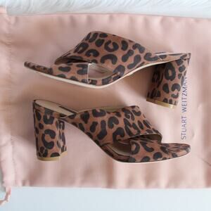 Stuart Weitzman Galene Leopard-Print Suede Criss Cross Open Toe Sandal Mules