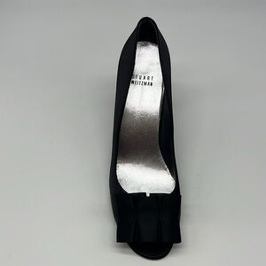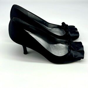 Stuart Weitzman - Gigiritz Black Satin Layered Ruffle Open Toe Slip On Heels Size 8