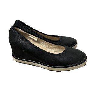 Stuart Weitzman Girls Irridescent Black Ariana Clare Wedge Pumps Size 4