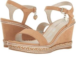 Stuart Weitzman Girls Tan Swinger Stitch Ankle Wrap Wedge Sandals