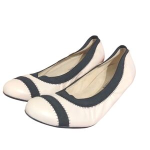 Stuart Weitzman Giveable Nappa Leather Ballet Flat Cream And Black Loafer Sz 8.5