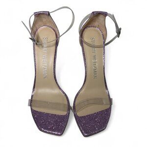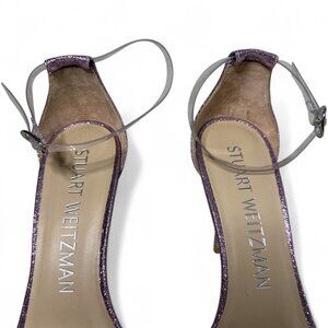NWOB Stuart Weitzman Nudistcurve Women's lilac glitter ankle strap sandals 8M.