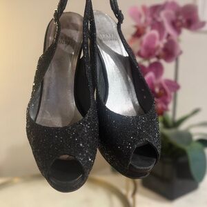 Shimmer with every step in these dazzling slingbacks from Stuart Weitzman. Designed with a sparkling glitter finish, this elegant pump combines timeless sophistication with a playful, eye-catching twist. The slingback strap ensures a secure yet graceful fit, while the sleek pointed toe and stiletto heel elongate the leg. Perfect for cocktail parties, weddings, or any event where glamour is required, these pumps add the right amount of sparkle to elevate any ensemble.