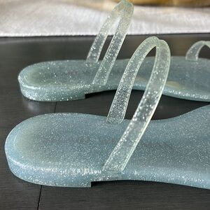 Elegant glittery sandals. Features a sleek strap design. Perfect for casual outings.
