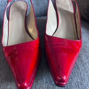 VERY gentle use Chic and glossy red heels by Stuart Weitzman. Sleek slingback design. Perfect for a stylish look.