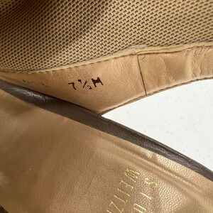 Stuart Weitzman Glove Tan Stretch Wedge Sandals 7.5 Classic Minimalist Peep Toe