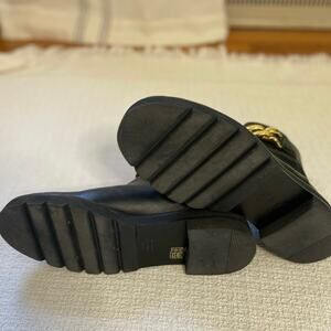 Stuart Weitzman Gold Chain Lift Boot Black Lug Sole Moto Combat Boots Size 7.5