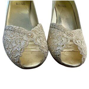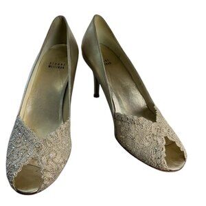 Stuart Weitzman Gold Chantilly Lace Peep Toe Pump Heel Formal Women's Size 9
