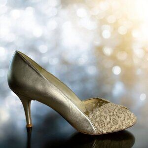 wedding, formal, special occasion, prom, homecoming, peep toe, lace heels, gold heels