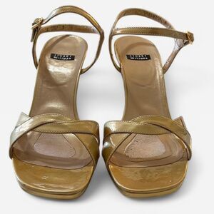 Stuart Weitzman Patent Leather Strappy Gold Metallic Crisscross Sandal Heels Size 8