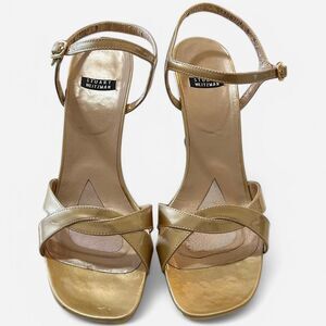 Stuart Weitzman Gold Heels Patent Leather Strappy Metallic Crisscross Sz 8