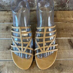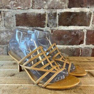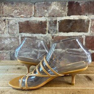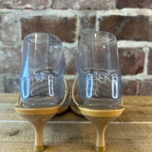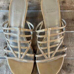 Stuart Weitzman Gold Metallic Leather Cutout Slide On Kitten Heel Sz 6.5